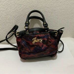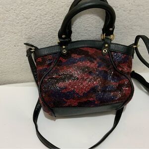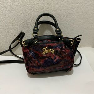 Juicy Couture Small Black Faux Leather Texitile Crossbody hand Bag