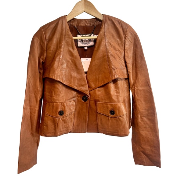 Juicy Couture Soft Brown Leather Jacket in Petite. This jacket is like new and has never been worn, but has been delabeled (tag crossed out).