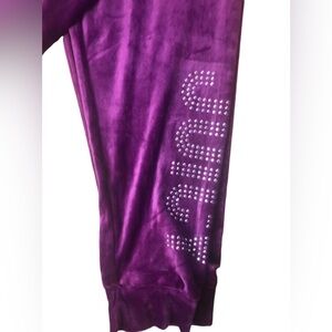 Juicy Couture Soft Velvet Bling Top & Jogger Lounge Set Sz L Purple Embellished
