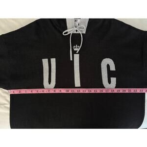 Juicy Couture Spell Out Hooded Sweater Women’s Sz L Black Gray Trim Street Wear