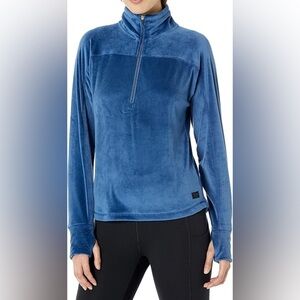 Juicy Couture Sport size XL Blue Velour 1/4 Zip Pullover Thumb Hole Sweatshirt