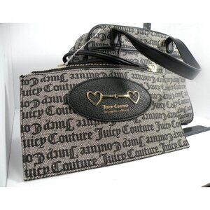 Juicy Couture Status Black Satchel & Clutch Set With Black Faux Leather Handles