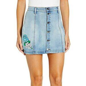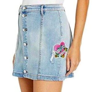 Juicy Couture Sz 24 Y2K Embroidered Tattoo Patch Denim Mini Skirt