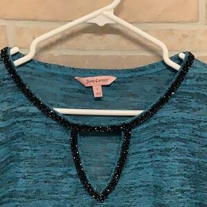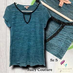 Juicy Couture -Sz S - Teal sparkle black Beaded Neckline keyhole Top lightweight