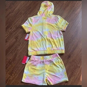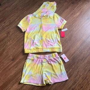 Juicy Couture Tie Dye Girls Set Terry Cloth Hoodie & Shorts X-Large New