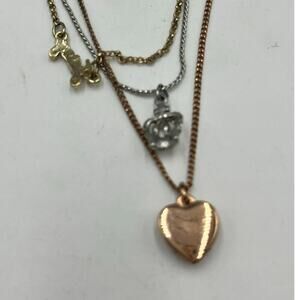 Juicy Couture Tiered Graduated Triple Strand 3 Charm Logo Crown Heart Necklace