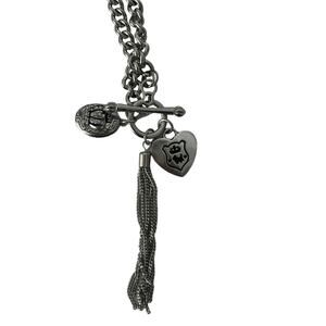 Juicy Couture Toggle necklace heart locket tassel sliver tone