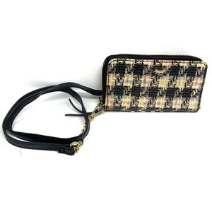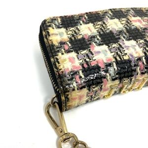 rare vintage Juicy Couture Wallet on Chain. Covered in a Y2K-inspired tweed plaid and finished with bold gold JUICY logo hardware, it’s the ultimate throwback statement piece.