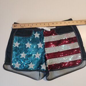 Juicy Couture US Flag Sequin Shorts Patriotic Denim Stretch July 4th USA Medium