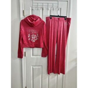Juicy Couture Velour Bling Tracksuit Set Pink Party Crown Logo Rhinestone XL