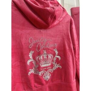Juicy Couture Velour Tracksuit Set Pink Party Crown Logo Rhinestone Zip Hoodie & Pants Size XL NWT Y2K