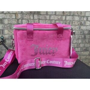 Juicy Couture Velour Cooler Bag Rhinestone Logo Insulated Lunch Tote NWT Pink