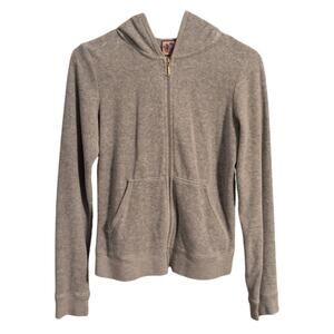 Juicy Couture Velour Full-Zip Hoodie – Gray w/ Gold & Maroon Crown Logo