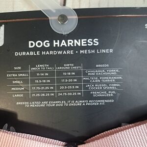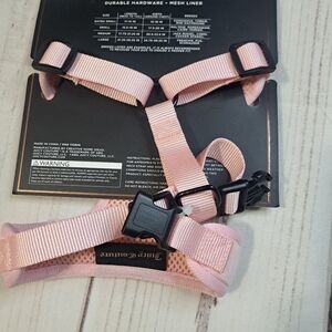 Stylish pink dog harness with Juicy Couture logo. Features durable hardware and mesh liner.