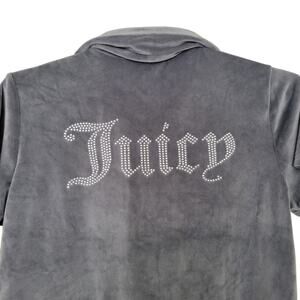 Juicy Couture Velour Top Size Large L Bowling Shirt Gray Bling Logo Y2K
