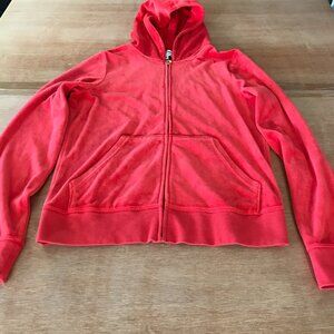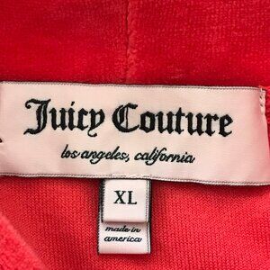 Juicy Couture Velour Track Jacket Women XL Red Y2K Full Zip Hooded Pocket Sports