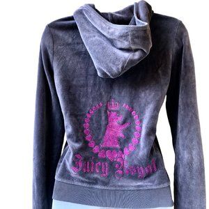 Juicy Couture Velour Zip Gray Hoodie Jacket Y2K Logo Royal Scotty Dog