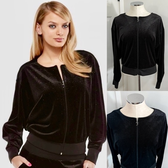 Juicy Couture Velvet Bomber Jacket Black Full Zip