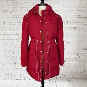 Juicy Couture Vintage Y2K Red Down Puffer Jacket Parka Coat Sz S Puffed Sleeve