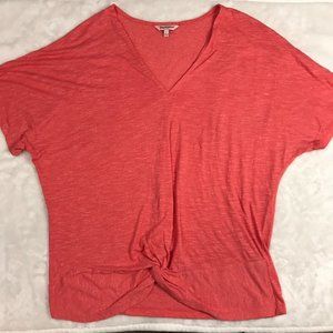 Juicy Couture Viscose Blend V-Neck Short Sleeve Blouse Women's Large Faux Tie