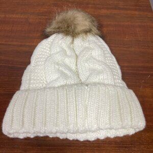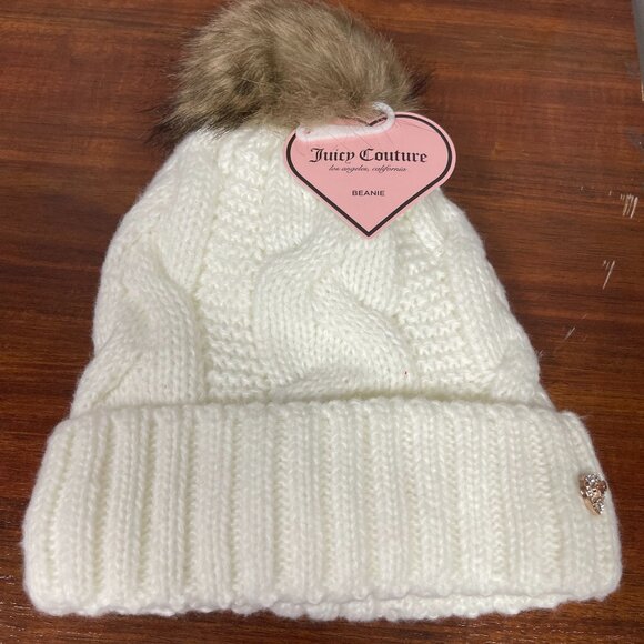 Juicy Couture White Beanie with Brown Pom One Size