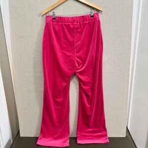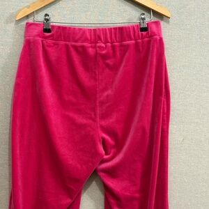 Gorgeous hot pink velvet track pants with sparkle Juicy logo at front left hip.