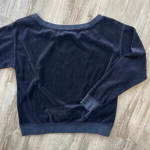 Juicy Couture Women Navy Velour Pullover Sweatshirt Crewneck Medium Made in USA