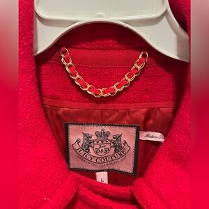 Juicy Couture Women Pea Coat Wool Blend Red God Button Double Breasted Size L