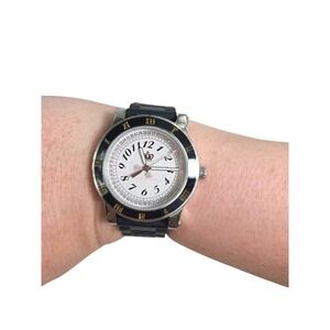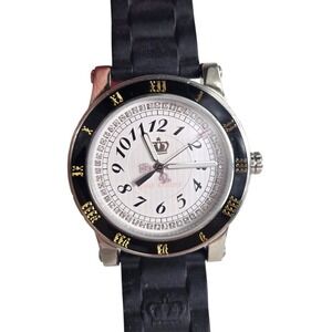 Juicy Couture Women's Black Watch Silver Tone Pave Bling Pink Crown Need Battery