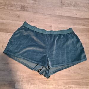 Juicy Couture Women’s Blue Velour Sleep Shorts Bling Booty Rhinestone Logo Large