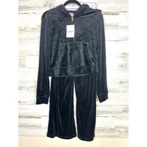 Juicy Couture Women's L Black Velour Hoodie Zip Jacket & Pants Jumpsuit Set NWT