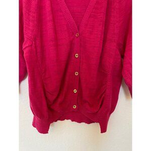 Juicy Couture women’s medium cardigan sweater, made from a cotton blend in a vibrant pink. Long sleeves and button-up closure provide a cozy yet stylish design. Pre-owned.