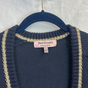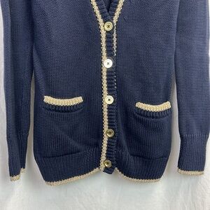 Juicy Couture Women’s Navy Blue Cardigan Gold Accents Sweater Size S