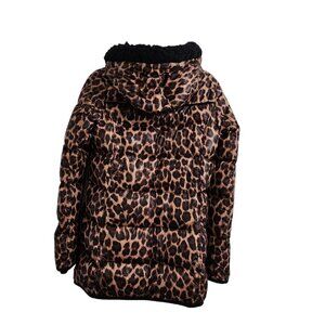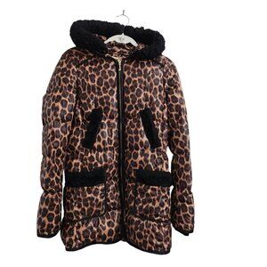 Juicy Couture Womens Puffer Coat Jacket Small Brown Cheetah Down Leopard Hooded
