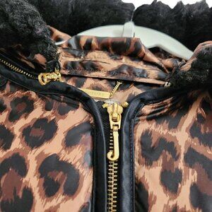 Juicy Couture Womens Puffer Coat Jacket Small Brown Cheetah Leopard Fur Hooded
