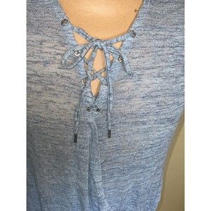 Juicy Couture Womens Size Large Short Sleeve Lace Up Faux Wrap Burnout Top Blue
