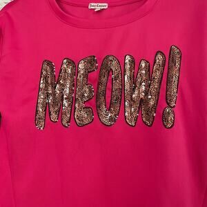Juicy Couture Womens Size Small Hot Pink Sequined Meow Long Sleeved Sweatshirt