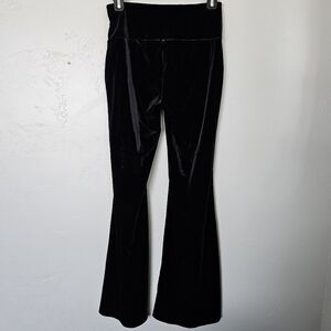Luxurious black velour pants with a stylish flare.