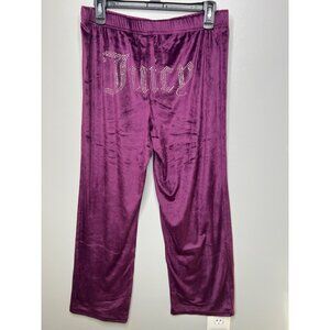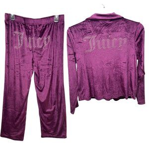 Juicy Couture Womens Velour Pajama Set Purple Rhinestone Embellished Size Medium