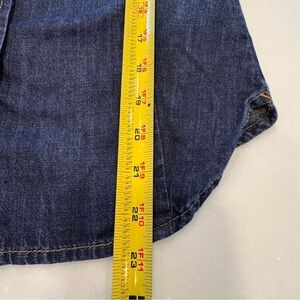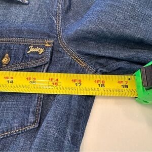 Excellent condition. Women’s Juicy Couture button up western style denim shirt. Front pockets, metal Juicy logo, 100% cotton. Size XS. See photos for measurements