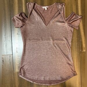 Juicy Couture XS Shimmery Metallic Tinsel Bronze V Nec Cold Shoulder Blouse Tank