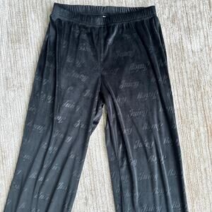 Juicy Couture Y2K Black Velour Flare Leg Pink Stripe Stretchy Sweatpants Small