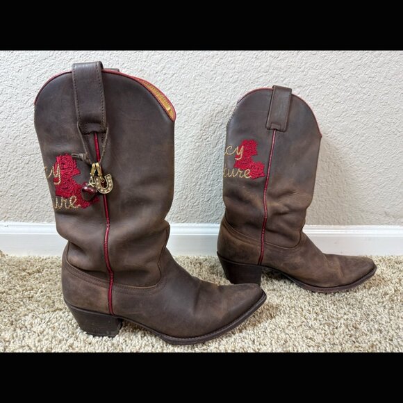 Juicy Couture Y2K Brown Cowboy Boots Leather Roses Western Cottagecore Charms 8M