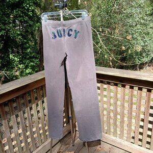 Juicy Couture Vintage Y2K Heather Grey 'Made In The Glamourous U.S.A.' Sweatpants Silver Thread 'X' Cross Stitched Tartan Plaid J.U.I.C.Y Butt