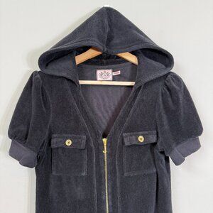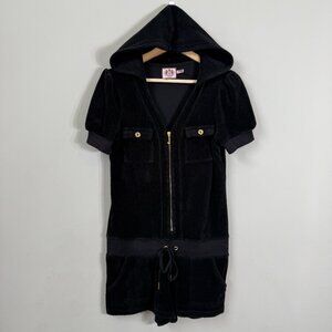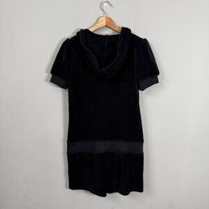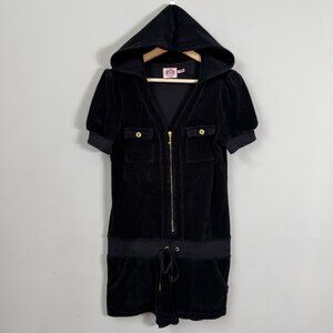 Juicy Couture Y2K Hooded Terry Cloth Romper Playsuit Women's Medium Black Retro