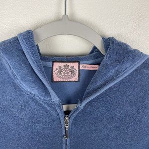 Juicy Couture Y2K Track Jacket Blue Terry Cloth Full Zip Hooded S Rhinestone