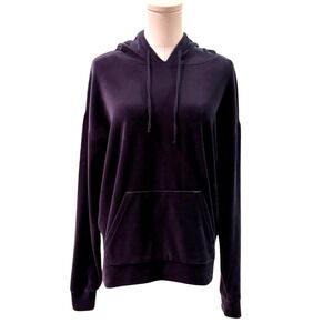 Juicy Couture Y2K Navy Blue Velour Pullover Hoodie Metallic LA Graphic Medium
