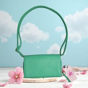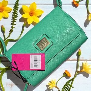 Add a fresh pop of color to your accessories with this adorable Juicy Couture crossbody wallet purse! π Made from soft vegan pebbled leather in a vibrant green hue, this stylish piece offers functionality and flair in one compact design. Perfect for everyday wear or to brighten up your going-out look, it features multiple card slots, an interior zippered compartment, and an easy button closure. The iconic Juicy crown logo lines the interior for a royal finish! Whether you're running errands or heading out for a fun day, this bag delivers major style vibes.