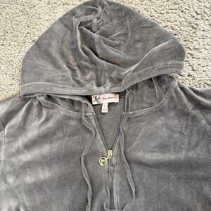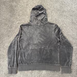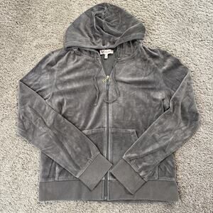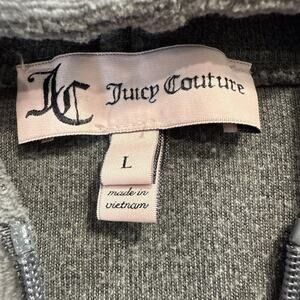 Juicy Couture Y2K Velour Track Suit Jacket L Gray Rhinestone Crown Bling Zip Up
