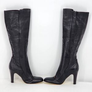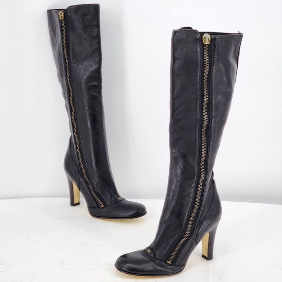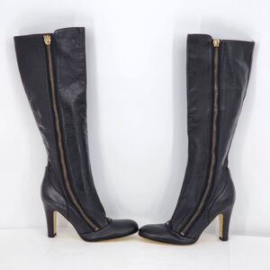 Juicy Couture Y2K Vintage Zipper Leather Black Tall Heeled Boots Size 7 RARE